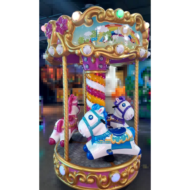 旋轉木馬:為室內小型的旋轉木馬,一機台有三個不同顏色木馬的座位。