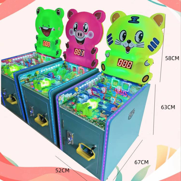 兒童射擊遊戲:在射擊的槍放入提供的小球,射向前方的公仔得分之遊戲機台。
